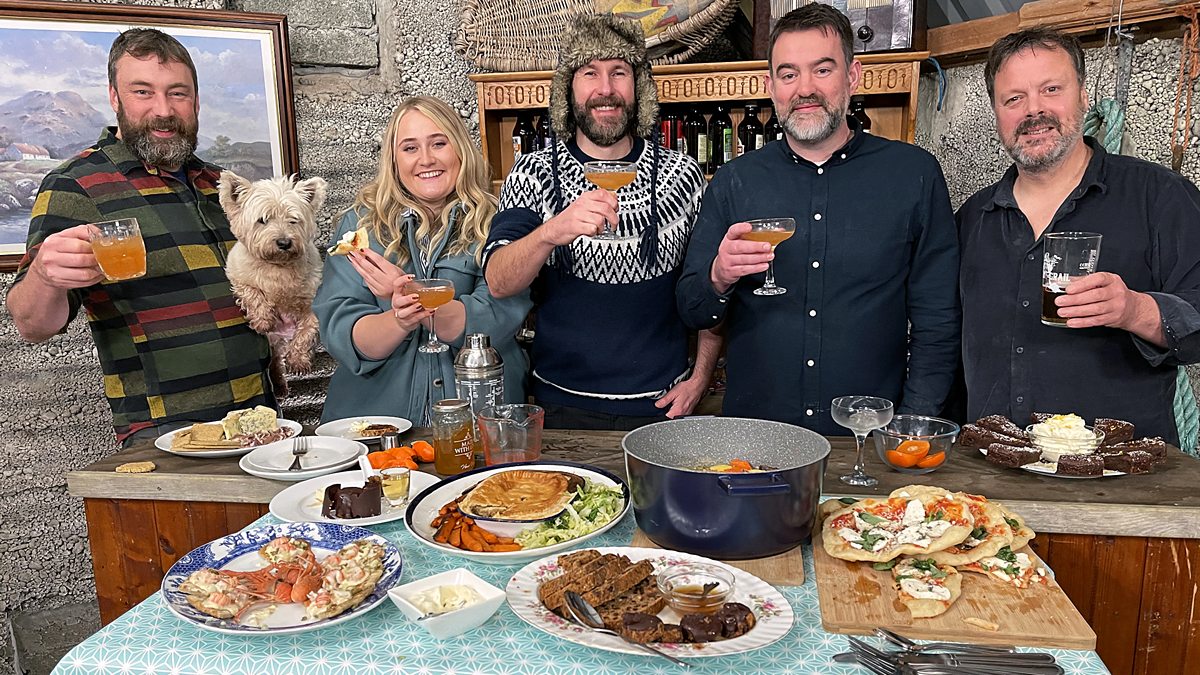 Ruaraidh prepares tasty salt cod scones with squat lobster, a venison pie and a sumptuous chocolate cake. Uisdean starts with a traditional 'Duff' or clootie dumpling and takes inspiration from times gone by salting and curing mutton. With that he makes mutton and potato soup, followed by an unusual but extremely tasty deep fried pizza. And who needs a straight dram when the cocktail-mixing Hebridean Baker joins the ceilidh?