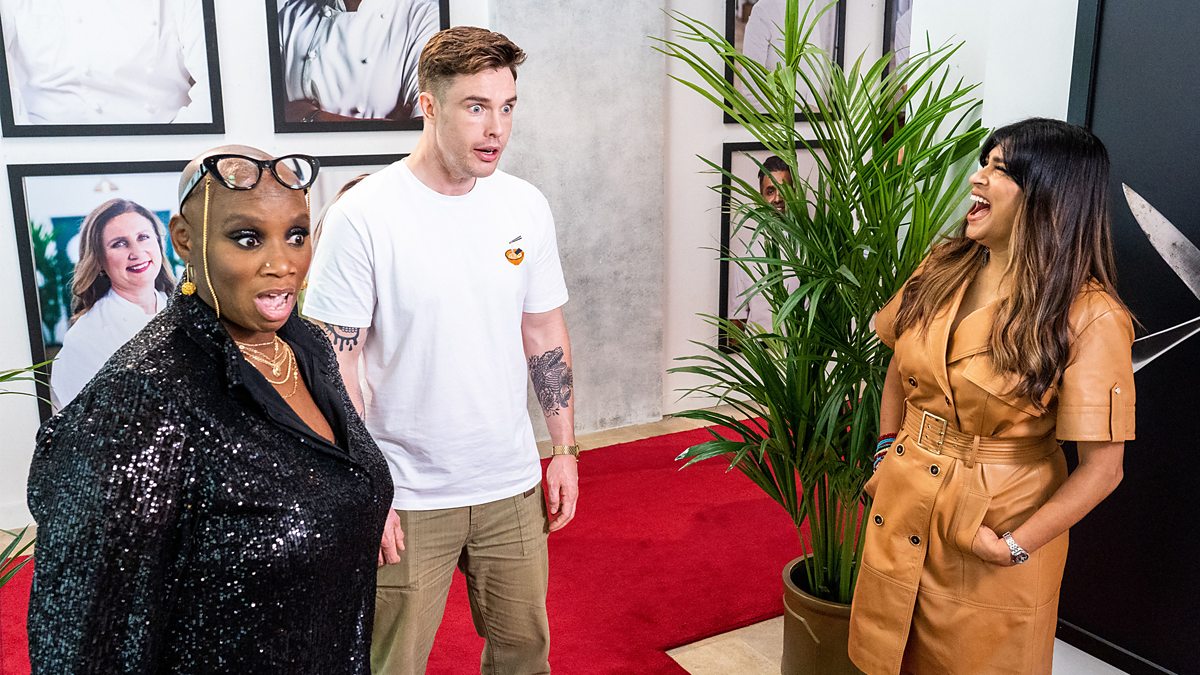 The three chefs are halfway through their heat, and the pressure is mounting. Once again, they each serve their unique interpretations of the brief celebrating 100 years of British broadcasting.