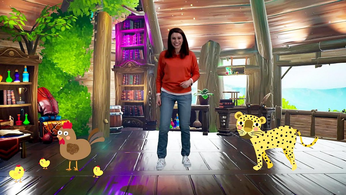 Tha Sophie agus a caraidean a’ bocadaich coltach ri cearc agus sìota. Sophie and her friends dance like a chicken and a cheetah.