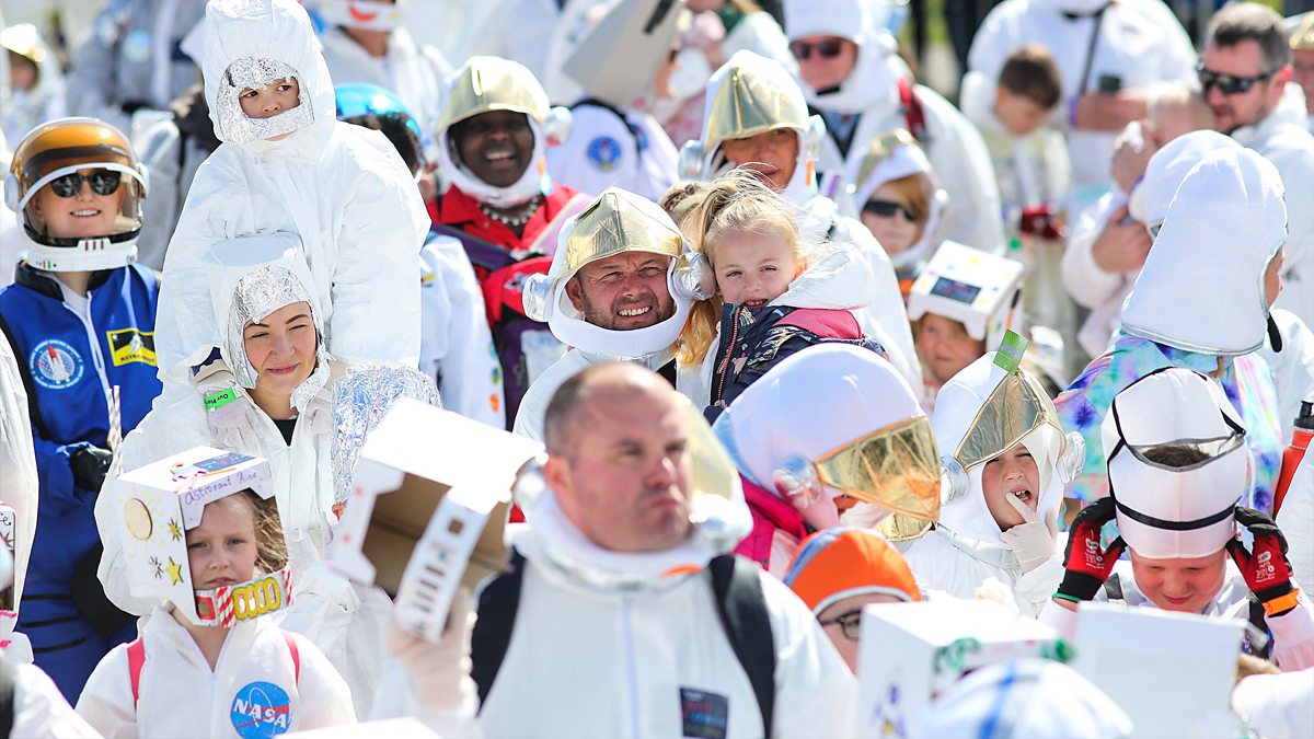 A sea of astronauts swarm the Maiden City in an attempt to beat a world record. Six-year-old Isla, her best friend Penelope and their mums journey across the city to make history.