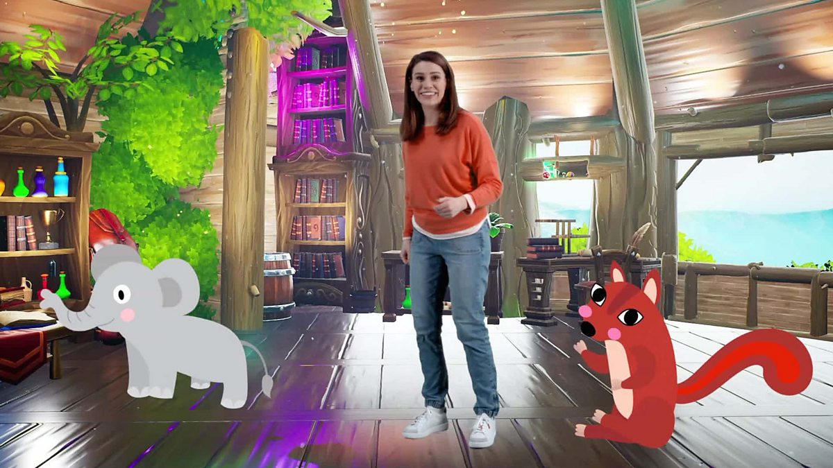 Tha Sophie agus a caraidean a’ bocadaich coltach ri ailbhean agus feòrag. Sophie and her friends dance like an elephant and a squirrel.