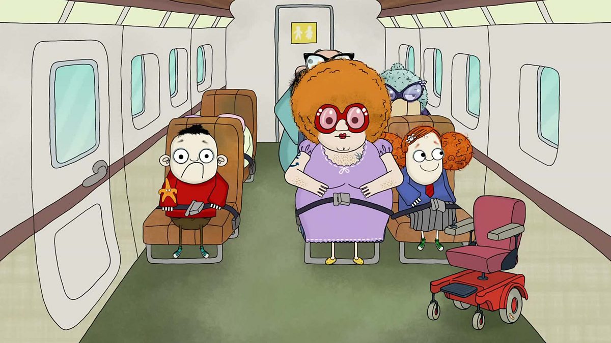 Dave’s first ever plane journey doesn’t quite go to plan when the air pressure combined with the need to go to the toilet makes his head swell. It’s not all bad news though when the pilot abandons them mid-flight and mum, Betty takes over. The Spuds are now free to fly wherever they wish. There’s only one problem - Dave’s head is wedged in the only exit to the plane.