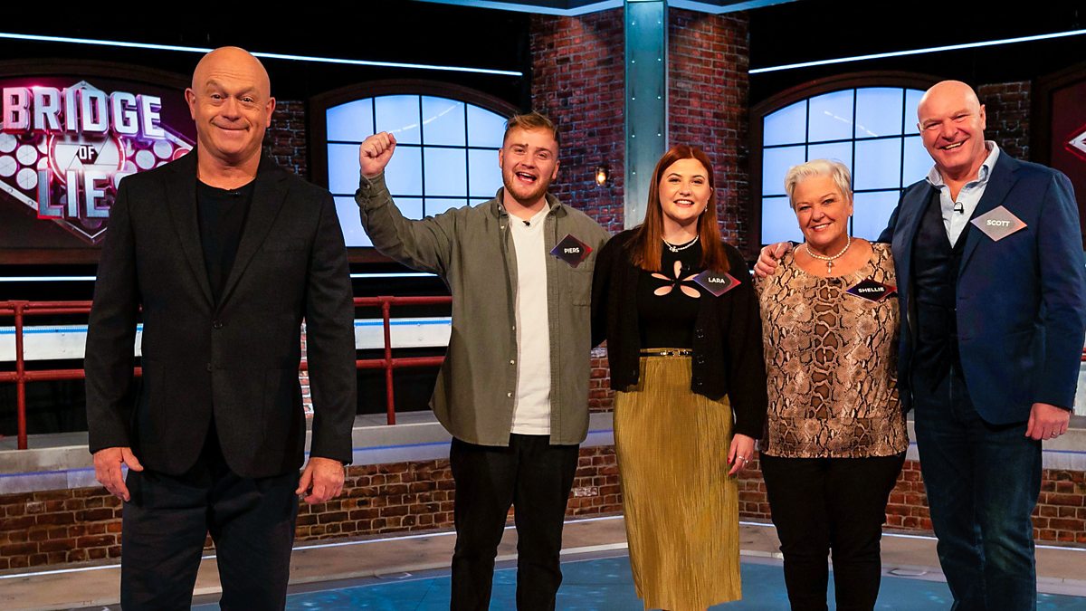 Ross Kemp presents the quiz show where a team of four take on the Bridge of Lies. One by one, they must cross the bridge, stepping on the truths and avoiding the lies.