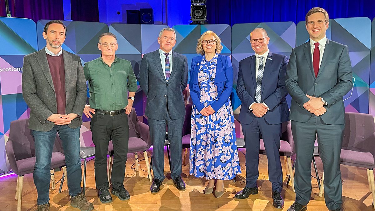 Debate Night is in Kelso with a studio audience putting questions to the SNP’s Jim Fairlie MSP; Rachael Hamilton MSP from the Scottish Conservative Party; Scottish Labour’s Daniel Johnson MSP; former strategist Stephen Noon; and broadcaster Pat Nevin. Hosted by Stephen Jardine.