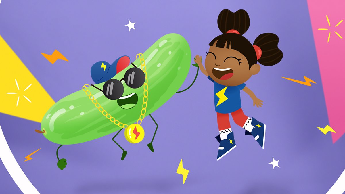 Dee encourages a friend to say ‘cucumber’, and we go on a whirlwind word adventure. We see cucumbers that are crunchy, mushy in the middle and curly. Dee meets a cool cucumber, and we meet a very cute baby one. The journey is repeated with some special surprises along the way, and everyone has a boogie when Dee’s friend finally succeeds in saying today’s word.