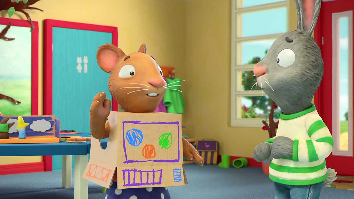 Tha tòrr dibhearsain aig Pip is Posy le èideadh ròbot Posy – gus an tèid cùisean frog. Pip and Posy have a lot of fun with Pip’s robot costume, until things go awry.