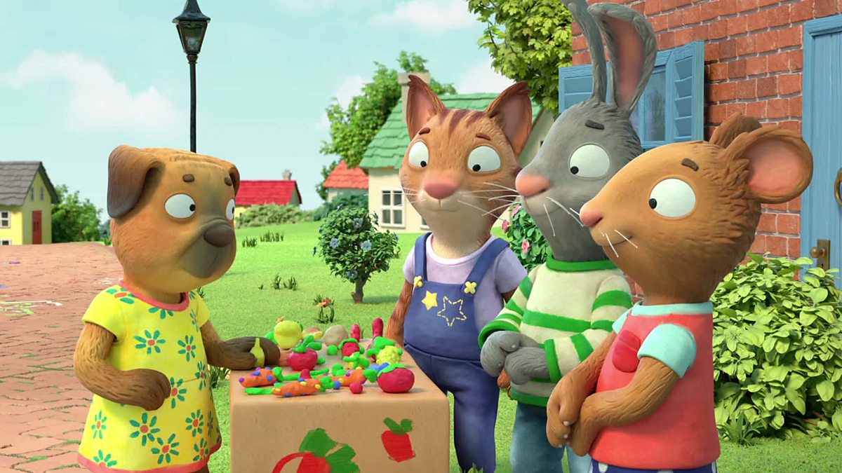 Pip, Posy and Francaidh set up a stall to sell food they’ve modelled from clay. Francaidh’s food looks odd but, after a while, they agree that his funny food is great.