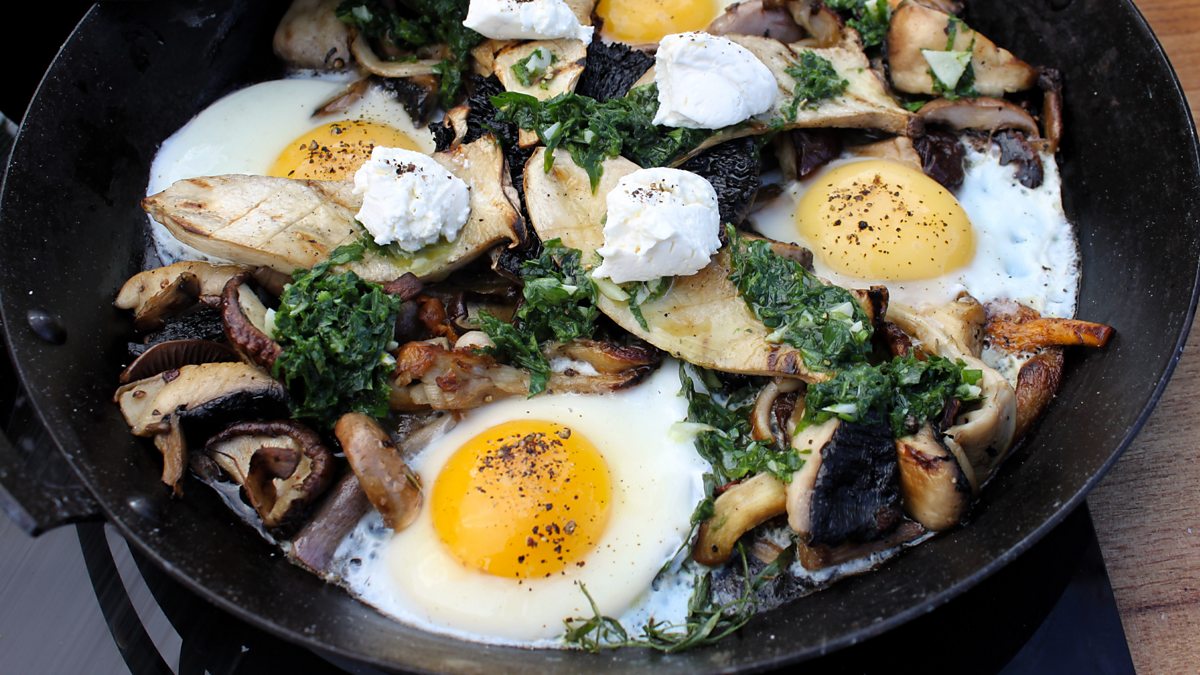 Marcus also has crops on his mind. After a recent visit to a small holder who grows wheat, Marcus is keen to give it a go himself, even though it’s the wrong time of year. So, after tilling a patch in his no-dig garden, he sows some wheat and hopes it’ll grow. For lunch, he rustles up a delicious mushroom and egg dish for him and wife Jane. With several types of mushrooms going into the hot pan, including oyster and portobello, it’s a proven family favourite.