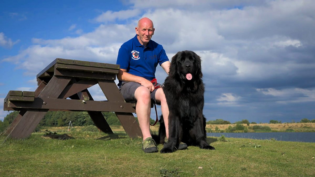 Swimming with Bob, the newfoundland therapy dog whose size and companionship supports those suffering from PTSD.
