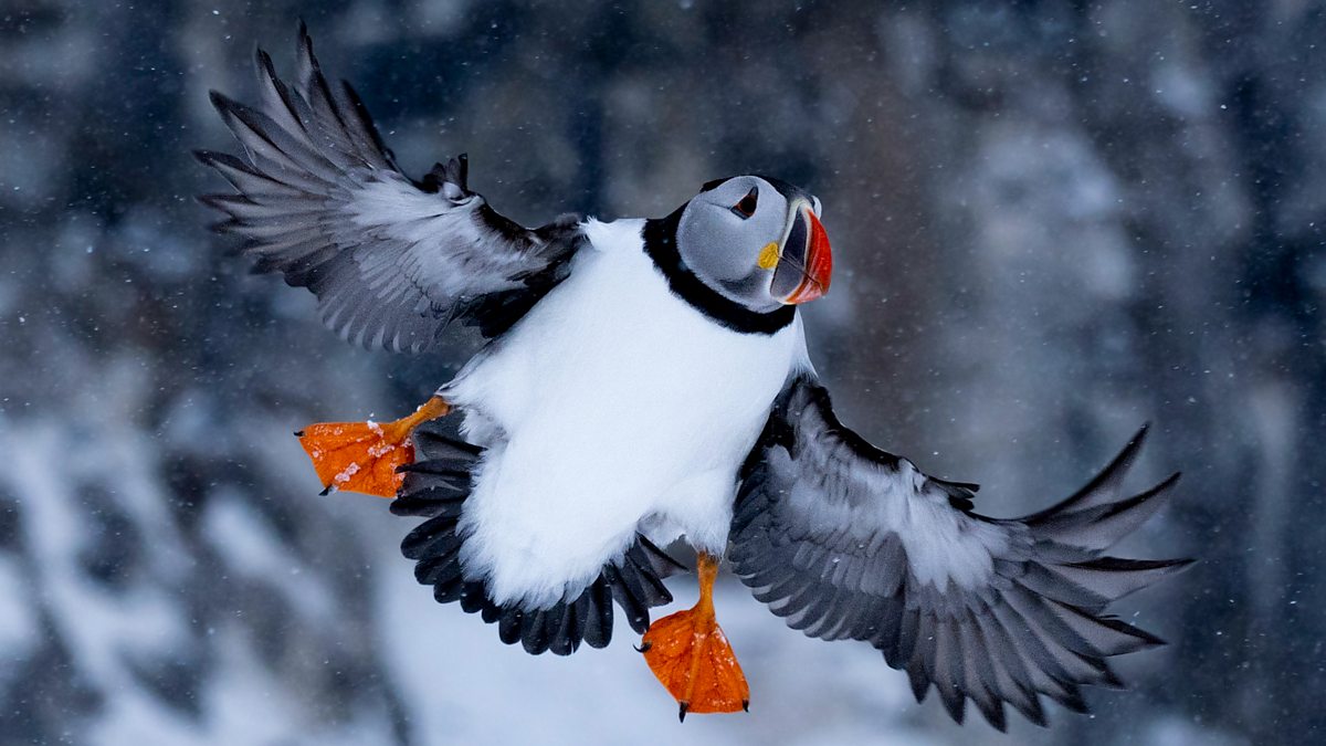 In the far north, tropical currents and Arctic seas collide, creating riches - billions of herring tracked by orcas and humpback whales - while providing a home to thousands of seabirds, including the feisty puffin.