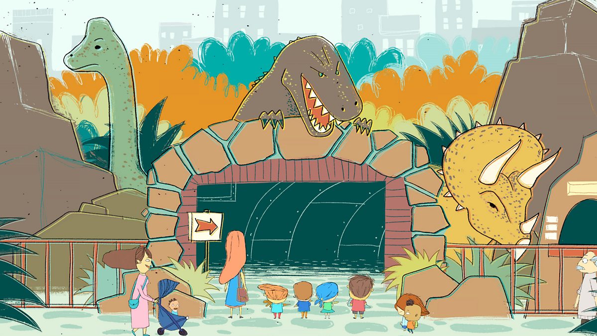 Tha taisbeanadh ‘Dìneasària’ a’ gealltainn gu bheil dìneasaran air ais air talamh! Tha Peicein is a charaidean ag ionnsachadh gun e breug a tha seo, ach tha Mamaidh Pheicein fhathast dhen bheachd gu bheil na dìneasaran fìor, mar sin chan eil a’ chlann a’ leigeil guth orra.