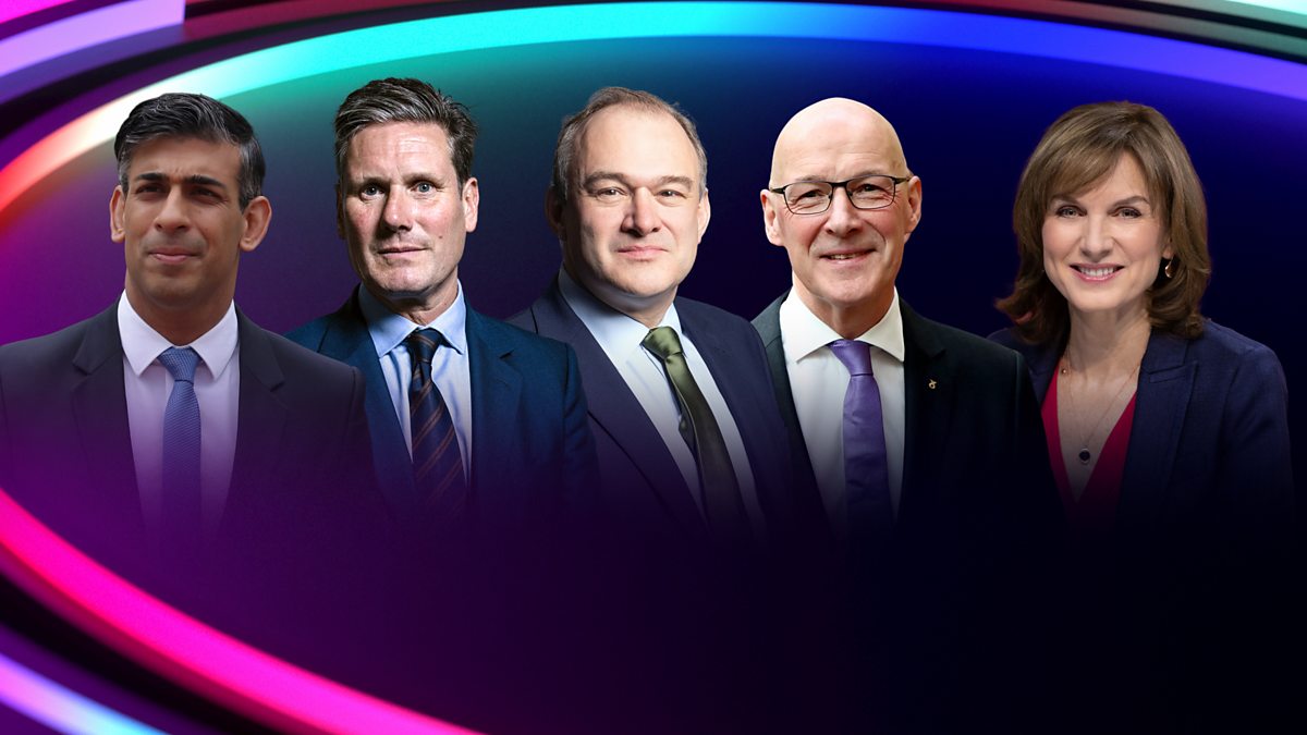 Fiona Bruce presents a two-hour leaders' special, with members of the panel facing topical questions from the audience. With Rishi Sunak, Sir Keir Starmer, Sir Ed Davey and John Swinney MSP.