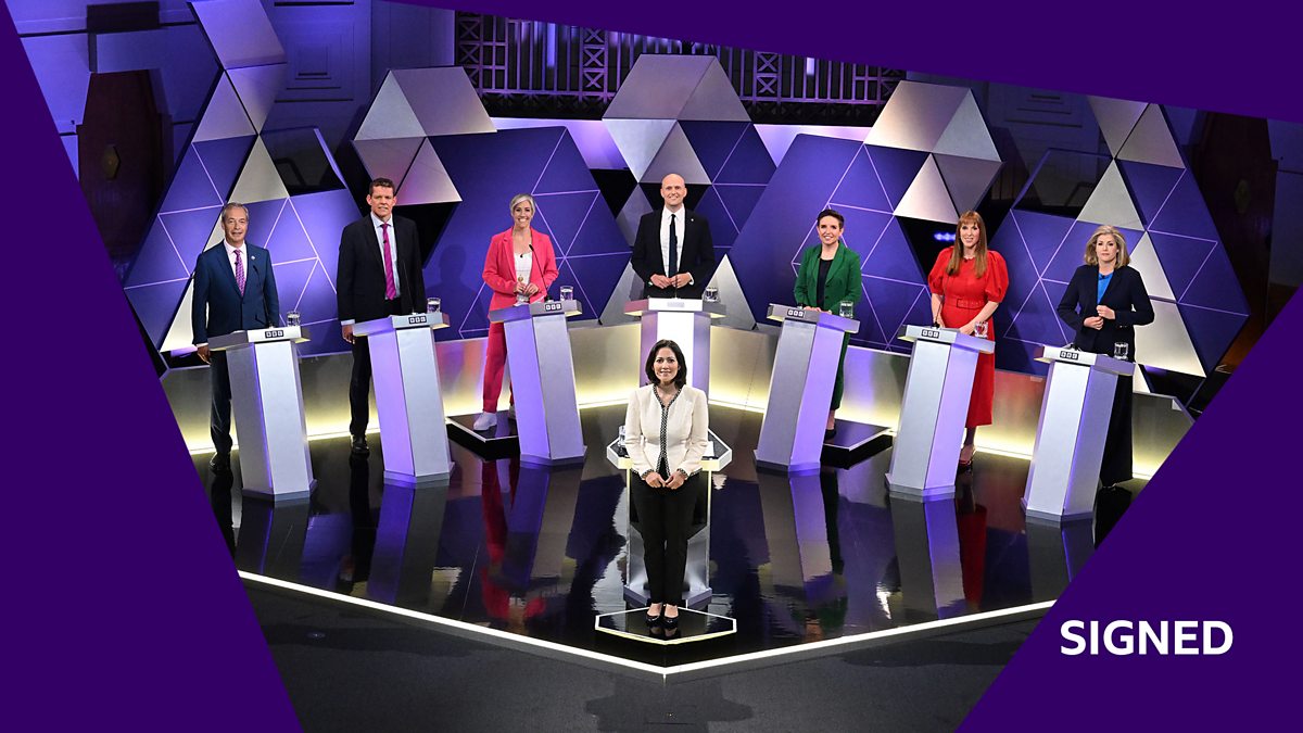 Leading figures from the seven biggest political parties in Great Britain face questions on the issues that matter most to voters. Hosted by Mishal Husain, the Conservatives’ Penny Mordaunt, Labour’s Angela Rayner, Liberal Democrat Daisy Cooper, Stephen Flynn from the Scottish National Party, Rhun ap Iorwerth from Plaid Cymru, Carla Denyer from the Green Party and Nigel Farage from Reform UK will face questions taken from a live studio audience and those sent into the BBC News website.