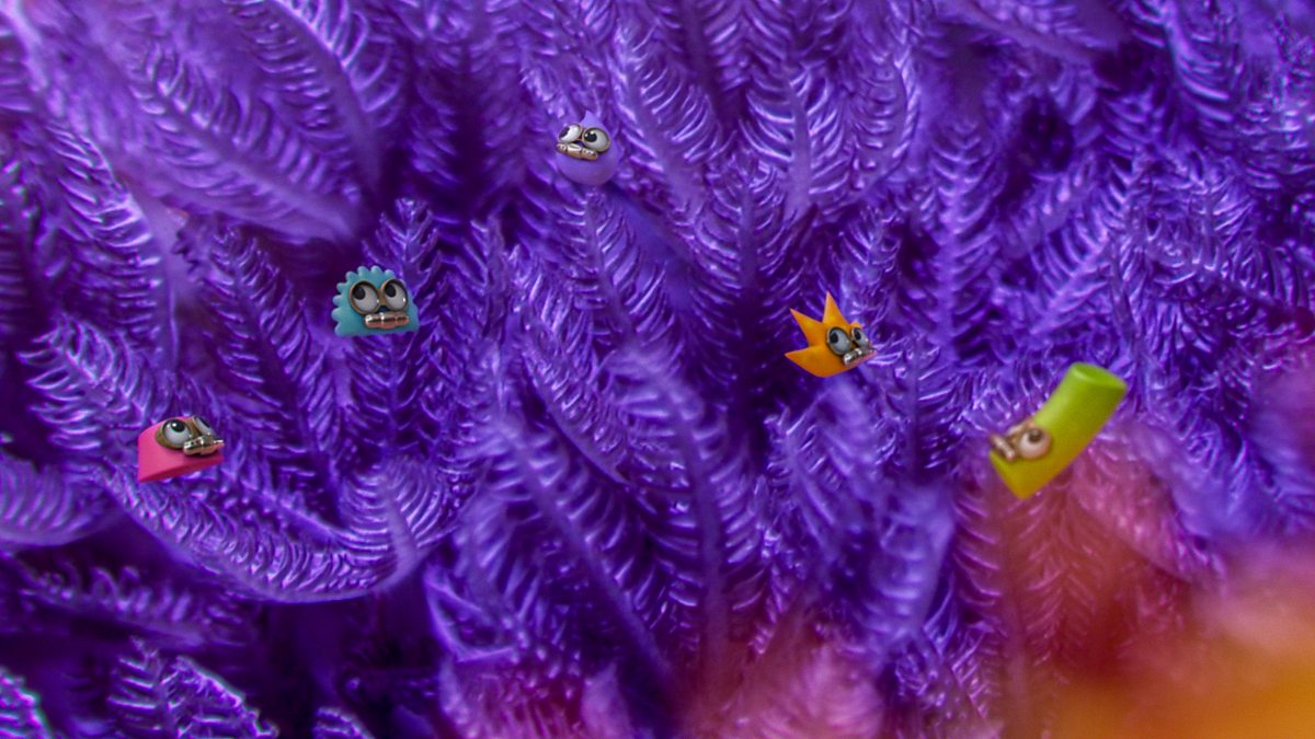 The children are looking at the fish. The Nogglins discover something colourful. Can Hum help them find Itty?