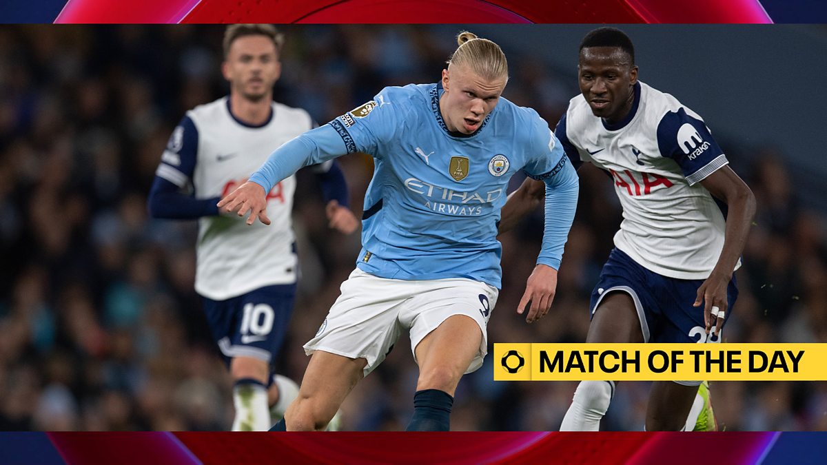 Gary Lineker introduces highlights of the day’s seven Premier League games, including the fixture between Manchester City and Tottenham.