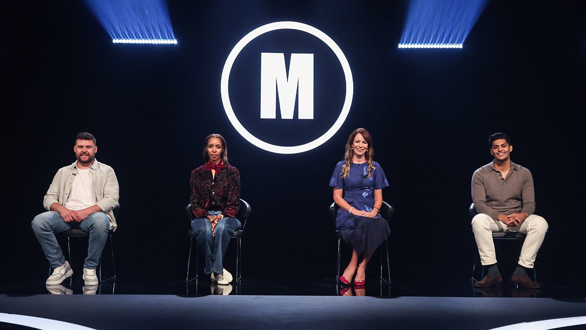 Danny Miller, Josie d’Arby, Elizabeth Rizzini and Qasa Alom are in the black chair as Clive Myrie asks the questions in the celebrity version of the classic quiz.