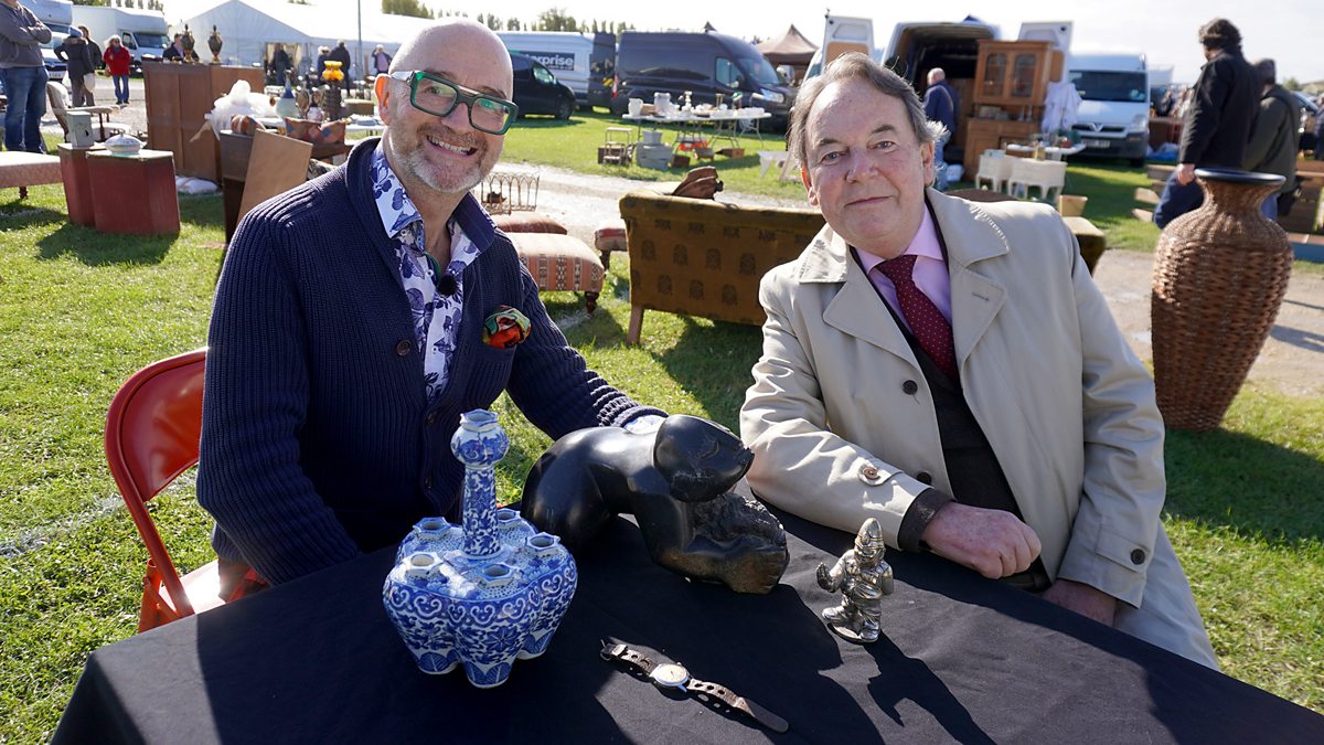 A sprawling antiques fair in Newark, Nottinghamshire, is the location for this lively edition of Bargain Hunt as two teams of friends compete to make the most profit at auction.