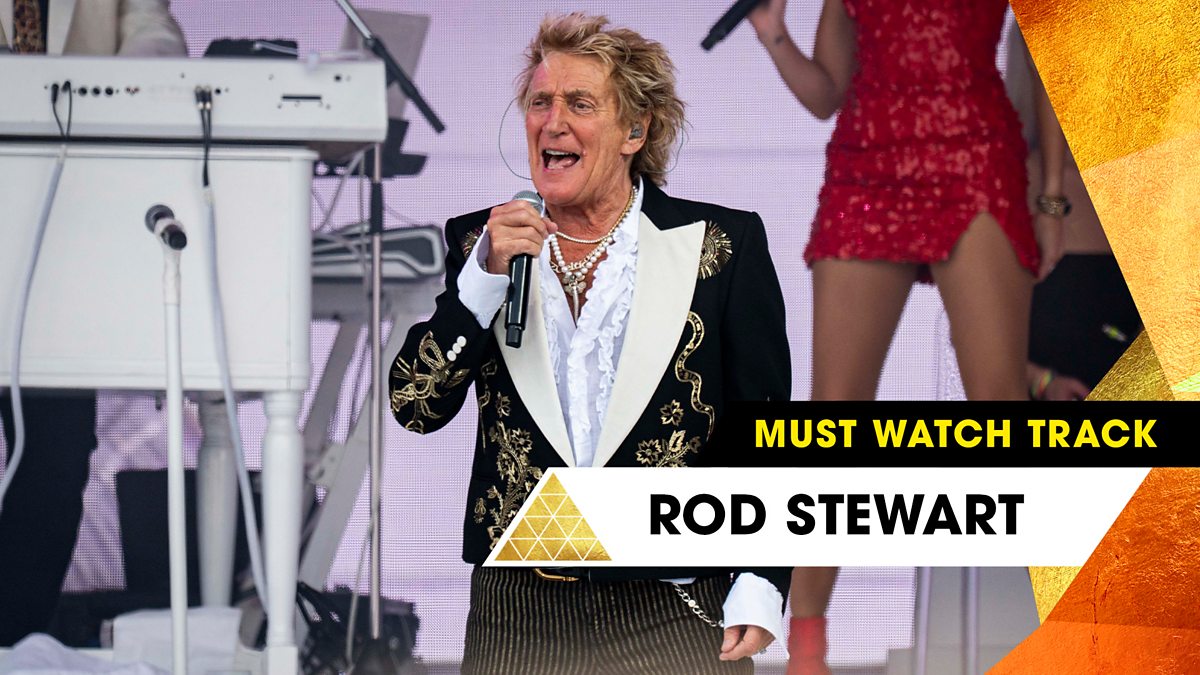 Rod Stewart performs Stay With Me at Glastonbury 2025.