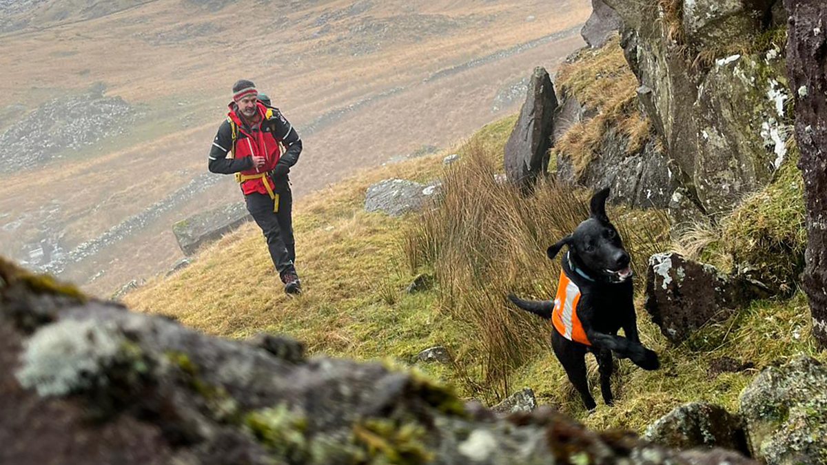 When it comes to searching Eryri’s vast, remote landscapes for missing people, there are some unique partnerships that can make all the difference. The specialist skills of the four-legged volunteers (and their owners) from the search and rescue dog association are invaluable when it comes to finding people quickly. There’s no time to lose for black labrador Barney and owner John, as they search for a man who’s been missing for over 12 hours.