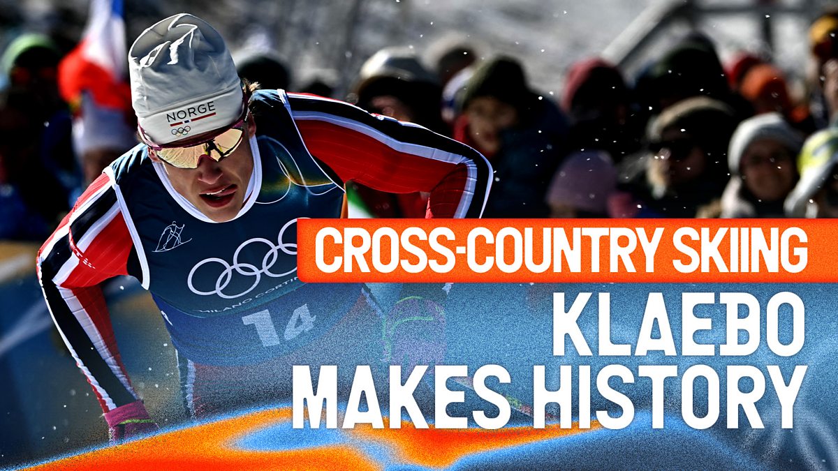 Norway's Johannes Hoesflot Klaebo becomes the first Winter Olympian in history to win nine gold medals with gold in the cross-country skiing men's 4 x 7.5km relay.