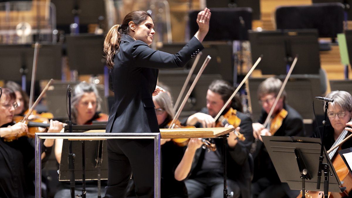 BBC SSO Principal Guest Conductor Delyana Lazarova conducts Jessie Montgomery's joyful work Strum, with string players from the orchestra.
