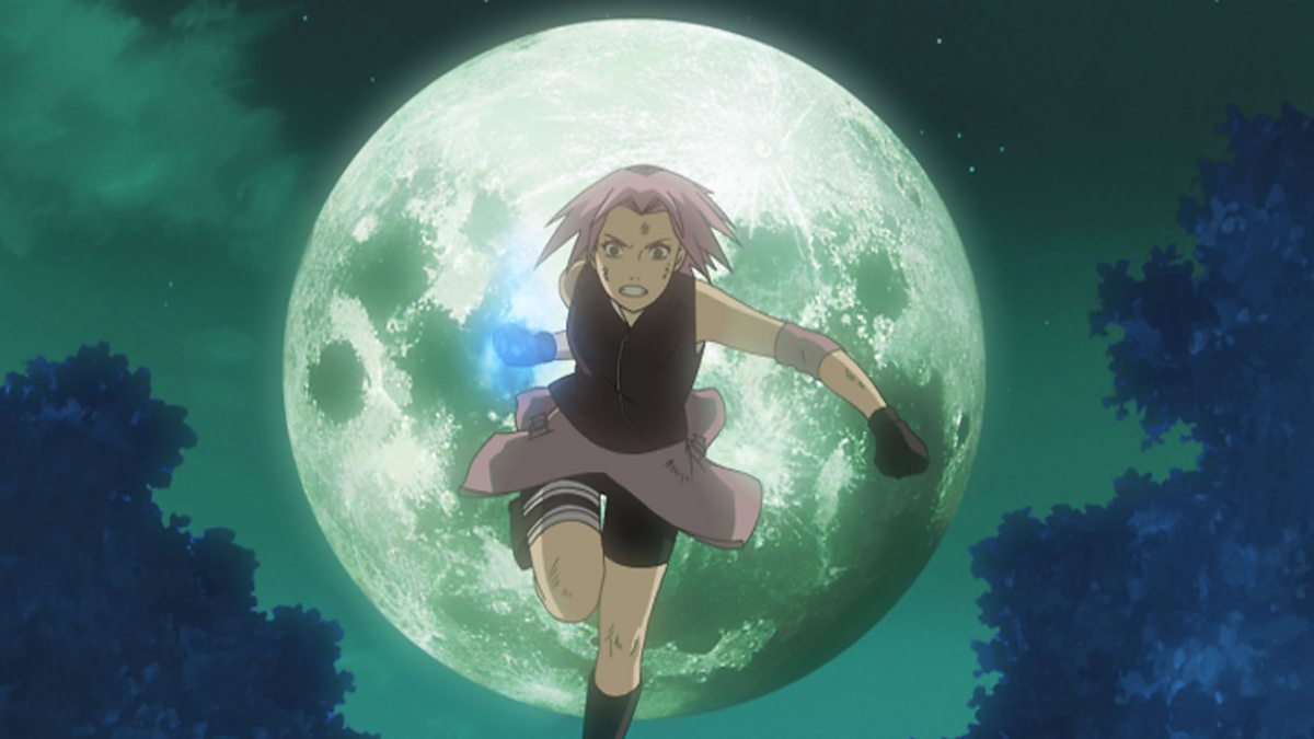 Gaara is quick to detect Deidara’s presence, and an aerial battle ensues with Deidara on his giant bird and Gaara atop sand. Sand jonin Yura is actually an Akatsuki sleeper agent, and the Village Hidden in the Sand suffers great damage. Back at the Leaf Village, Naruto and Sakura continue their survival challenge and get a firsthand look at the amazing power of Kakashi the Copy Ninja. The battle is at a stalemate. Finally, the duo implements their ace in the hole.