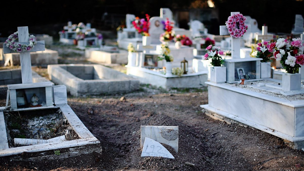 Greece's cities are running out of room to bury the dead. Most graves are now rented rather than owned, and, after three years, the bodies are exhumed to make space for new arrivals. For those who can afford to pay, the exhumed bones are stored in an ossuary. For those who can't, the bones are thrown into a communal pit. Cremation is not an option: the practice is forbidden by the Greek orthodox church and all attempts to open crematoriums have failed. As Greeks struggle under austerity, the business of burying the dead has become prohibitively expensive; stressful and chaotic. Chloe Hadjimatheou reports from Greece for Our World. Viewers may find some scenes in this programme upsetting.