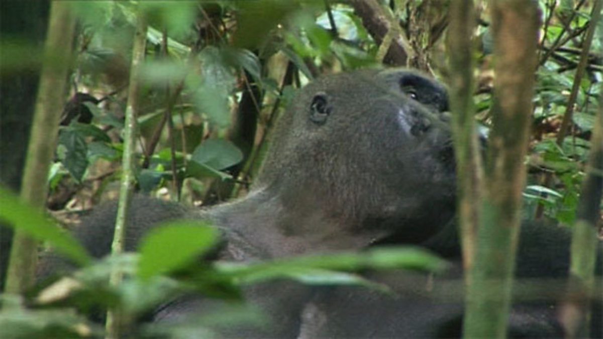 In the heart of the Congo, primatologist Charlotte Uhlenbroek tracks the only group of lowland gorillas in the world to allow humans so close. The chest-beating of the silverback Kingo was captured on film in close-up and in unprecedented detail as he warned off another troop that had ventured into his territory. Used with kind permission by Diane Doran, Stony Brook University.