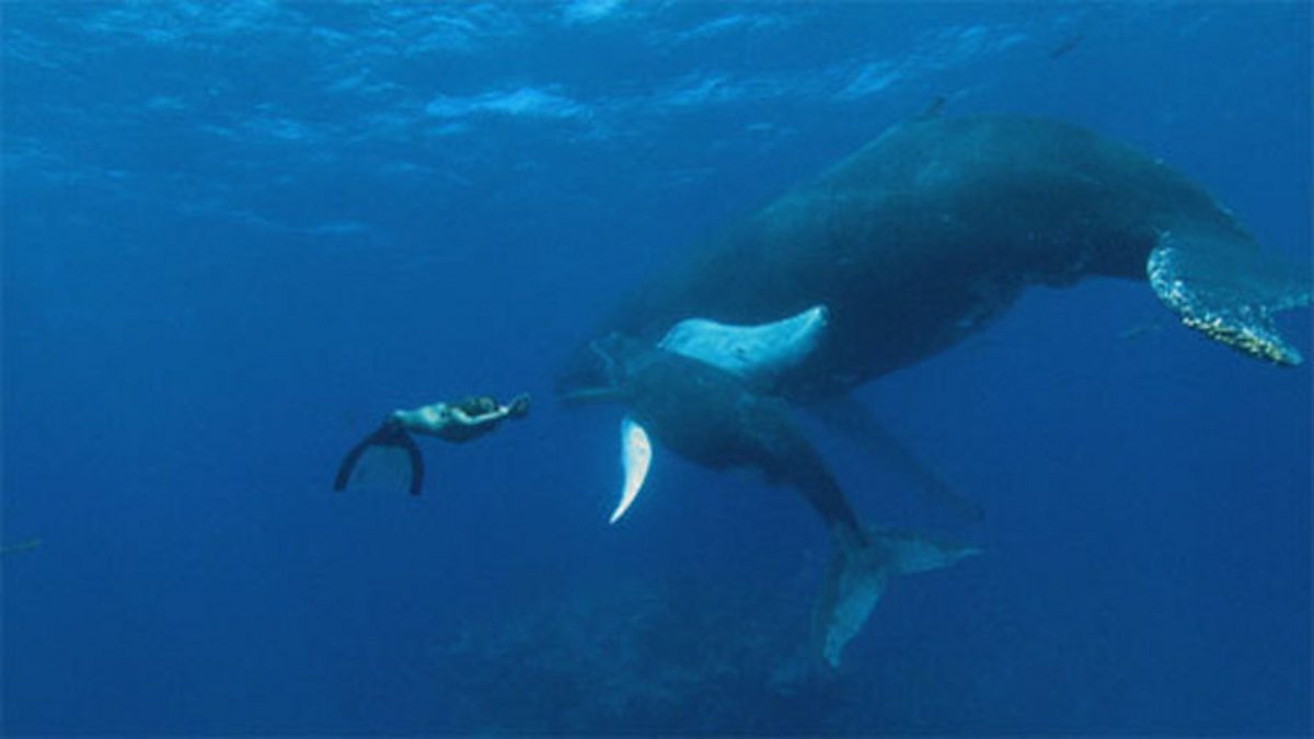 For only a few weeks each year, humpbacks migrate to a remote corner of the Caribbean to flirt, fight and give birth. Tanya Streeter can hold her breath for over six minutes, long enough to swim completely submerged alongside the whales. The sequence gives a great sense of scale, showing the huge size of these huge but gentle creatures.