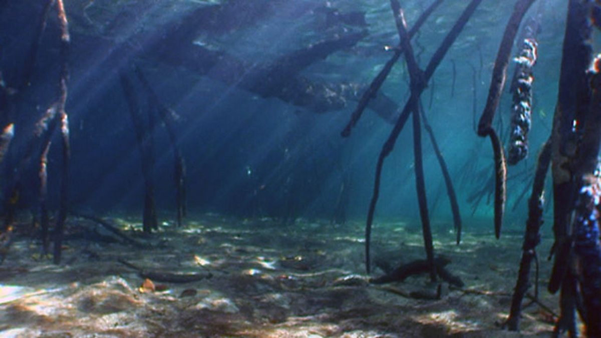 Mangroves are a unique environment, like a type of botanical amphibian - with one foot on land and the other in the sea. These mangroves, which border the islands of the archipelago off Indonesia, are an endangered habitat, threatened by land development and shrimp fishing. But they are vital habitats that support a wealth of wildlife, from crabs and snakes to oysters and birds.