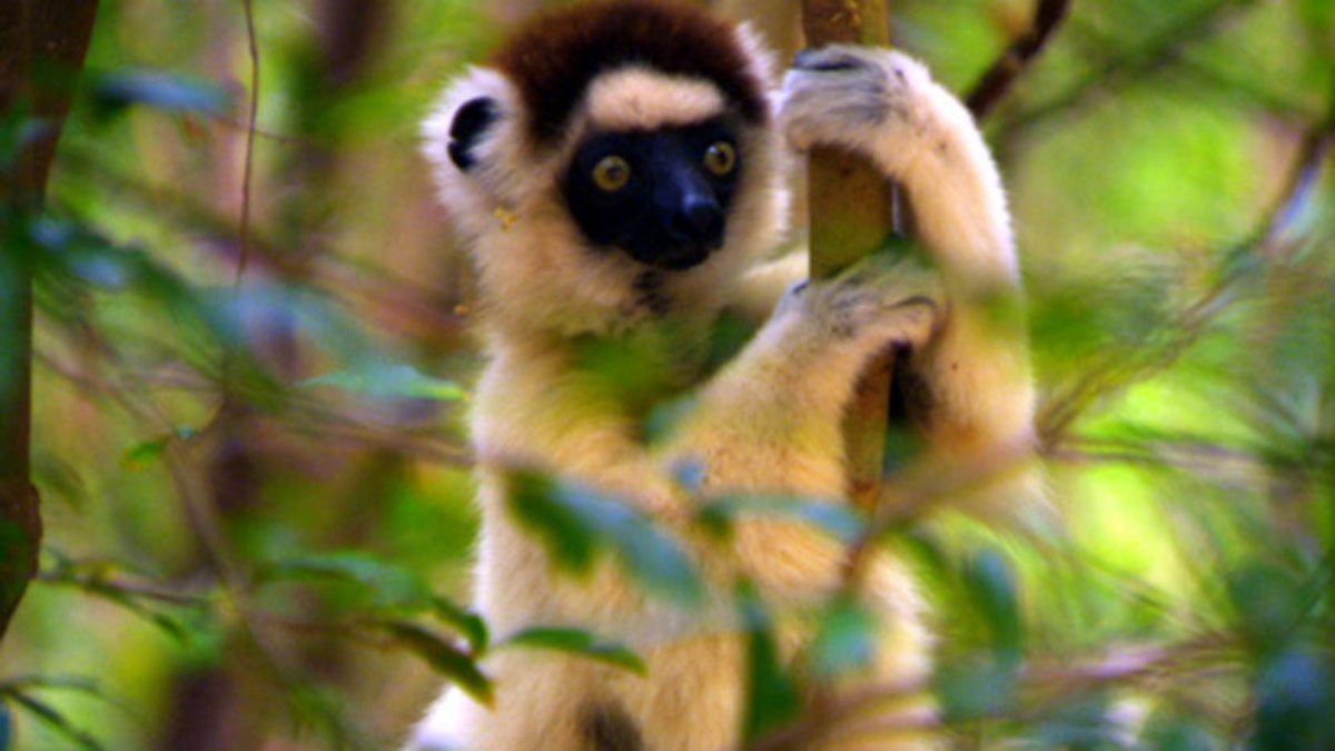 One of almost a 100 species of lemur, the dancing sifaka has an extraordinary and unusal gait when they are forced to come out of the trees and move about on the ground.
