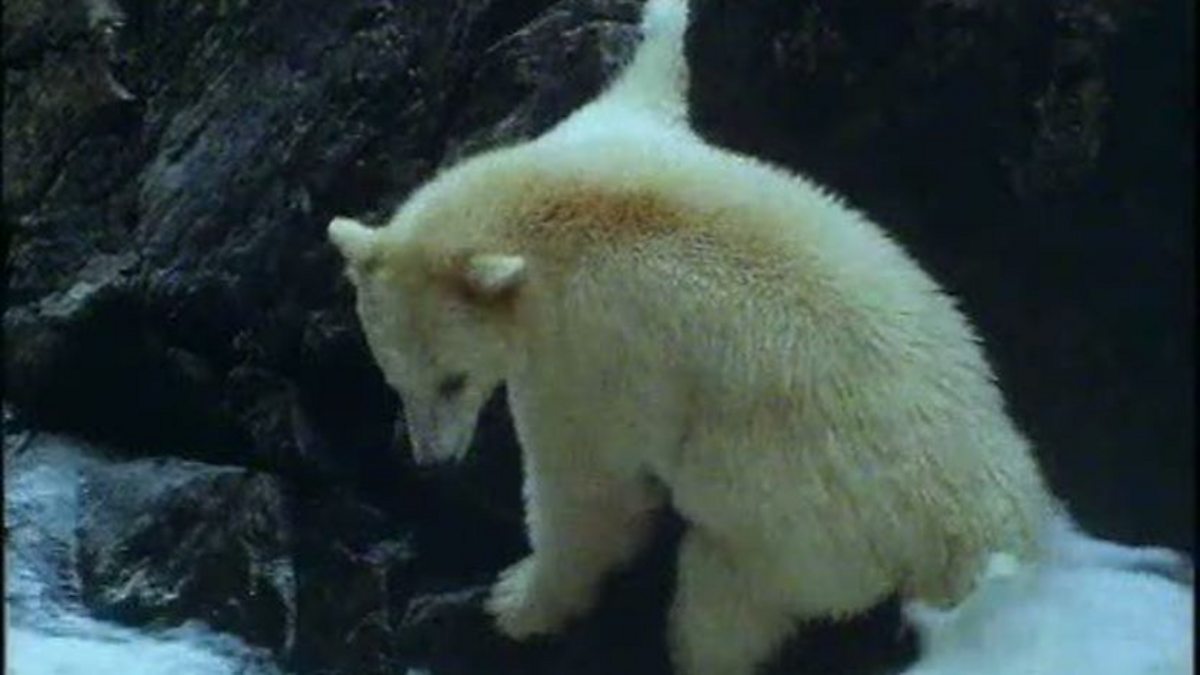 A young white bear has found what looks like a good spot to try fishing. He hasn't had to fight off any other bears to get here and it soon becomes clear why that might be. The rocks are slippery and sheer. Hanging precariously on to the rock face, the youngster edges his way across the slippery surface, and manages to reach a good position. The larger bears have had to give this place a miss as it's just too difficult for them to move their bulk in this way. Making the most of his white fur, which makes him harder for the fish to spot, the young bear soon catches his first prize salmon. Then he has to use all his remaining strength to climb back up the slippery rocks so he can eat his salmon in peace.