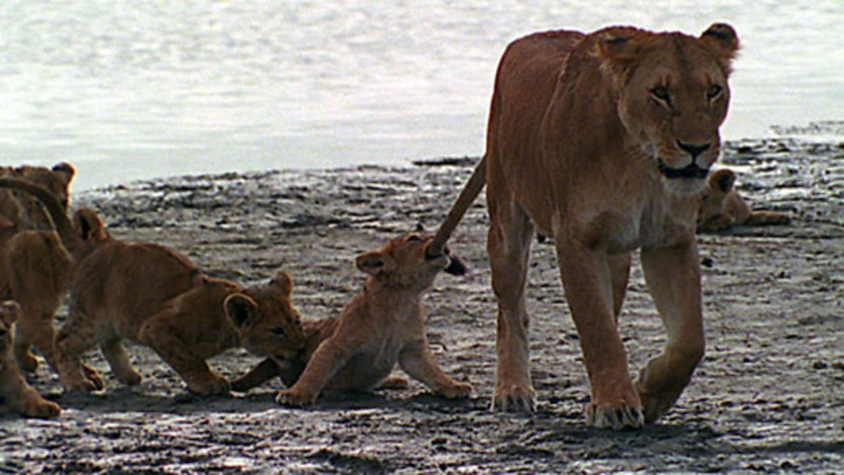 Many animals are born into volatile and treacherous communities. Lion cubs start by avoiding the pride - mothers behave as though the pride is a dangerous thing. The cubs are born blind and helpless and she hides them for the first six weeks, visiting them only for feeds. Sibling rivalry starts early: the cubs all have their own characters, each very different, much like our own families. The mother has to juggling difficult decisions: she must introduce her cubs to the pride, but it’s a risk - lions kill infants they don’t know. It’s crucial that they recognise these cubs as nephews and nieces, or even as their own offspring. The mother approaches a teenage male, probably her son from a previous litter, snarling a warning at him. He returns the snarls but slowly the cubs win him round. They play with him, almost teasing his conflicting emotions. The new cubs become part of the pride. Mothers, sisters, and older daughters all work together, feeding and guarding the cubs as they turn the Serengeti into their playground.