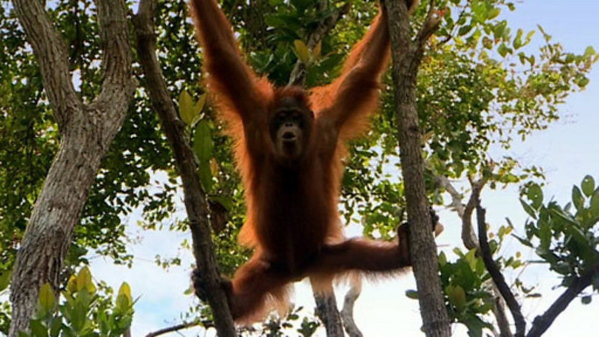 Never work with children or animals, and definitely don't combine the two. Young male orangutans have plenty to prove and after having had various items of equipment pinched the crew decided enough was enough and they wouldn't feature the troublesome teens in the series. This was the only sequence filmed and it was more than enough to remind the crew of why they'd made the decision. Film-makers hope for a little drama, but not at the expense of losing presenter and cameraman to pieces of falling forest!