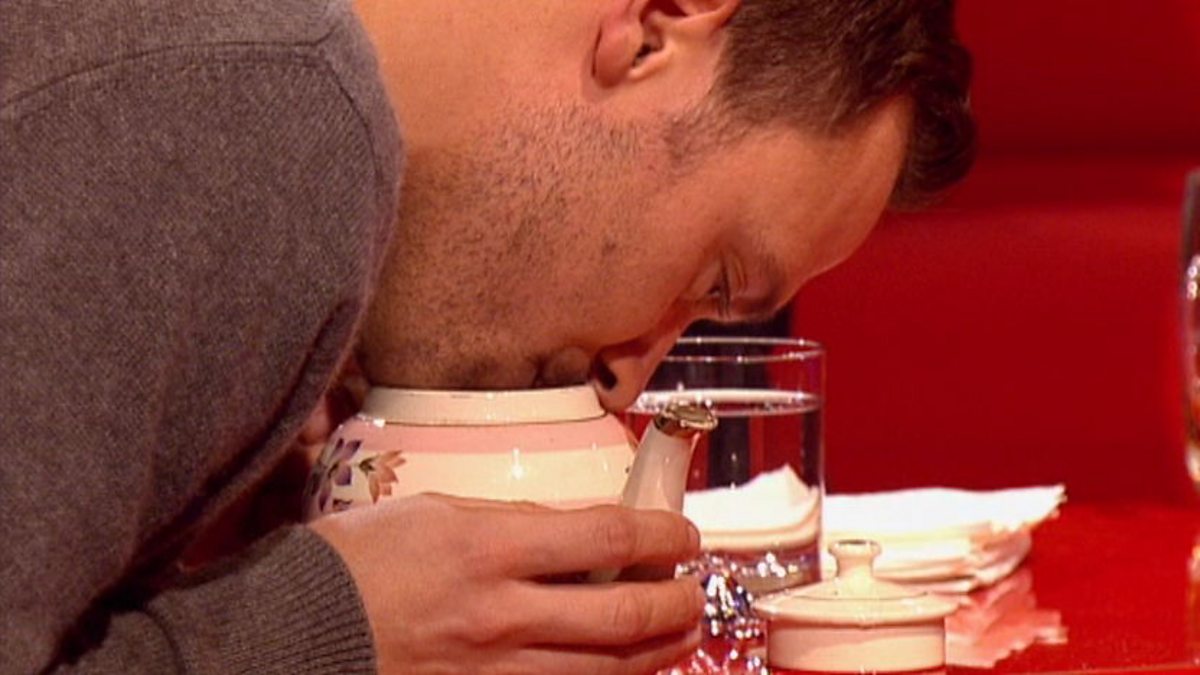 Graham is joined Robert Downey Jr, Ed Byrne and Will Young in a tea blowing competition.
