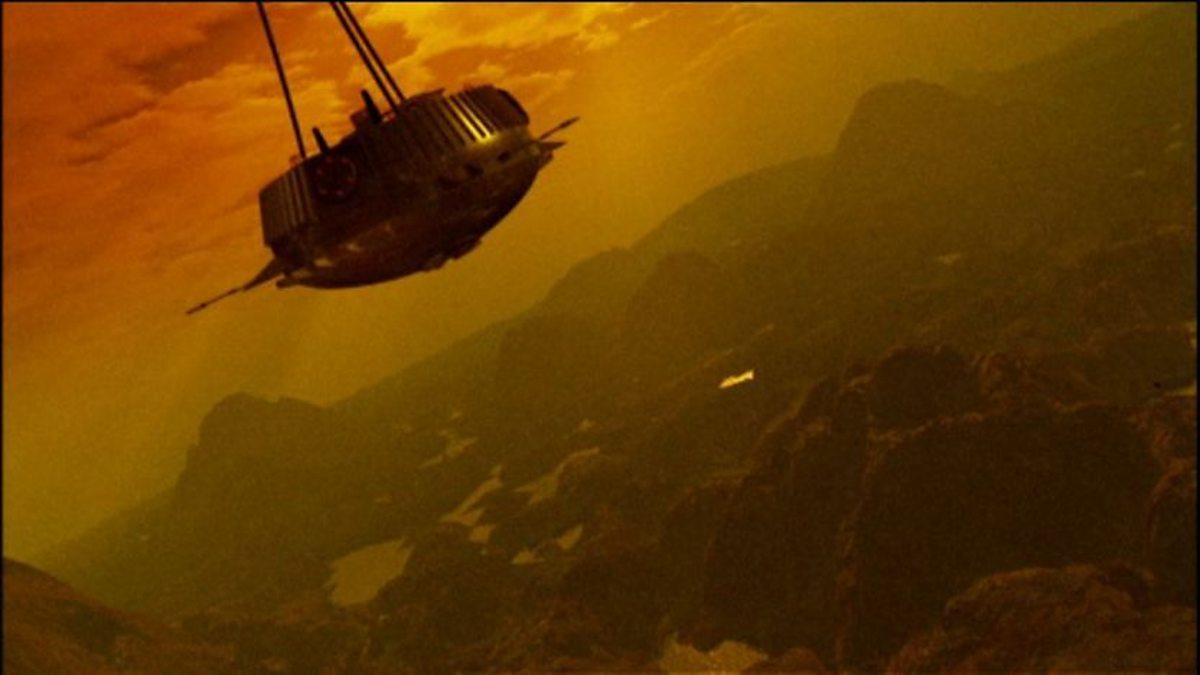 After a long journey fraught with technical problems, the Huygens probe managed to land on Saturn's moon Titan on 15 January 2005. The probe returned images and other data that showed scientists a surface covered with what may be riverbeds.