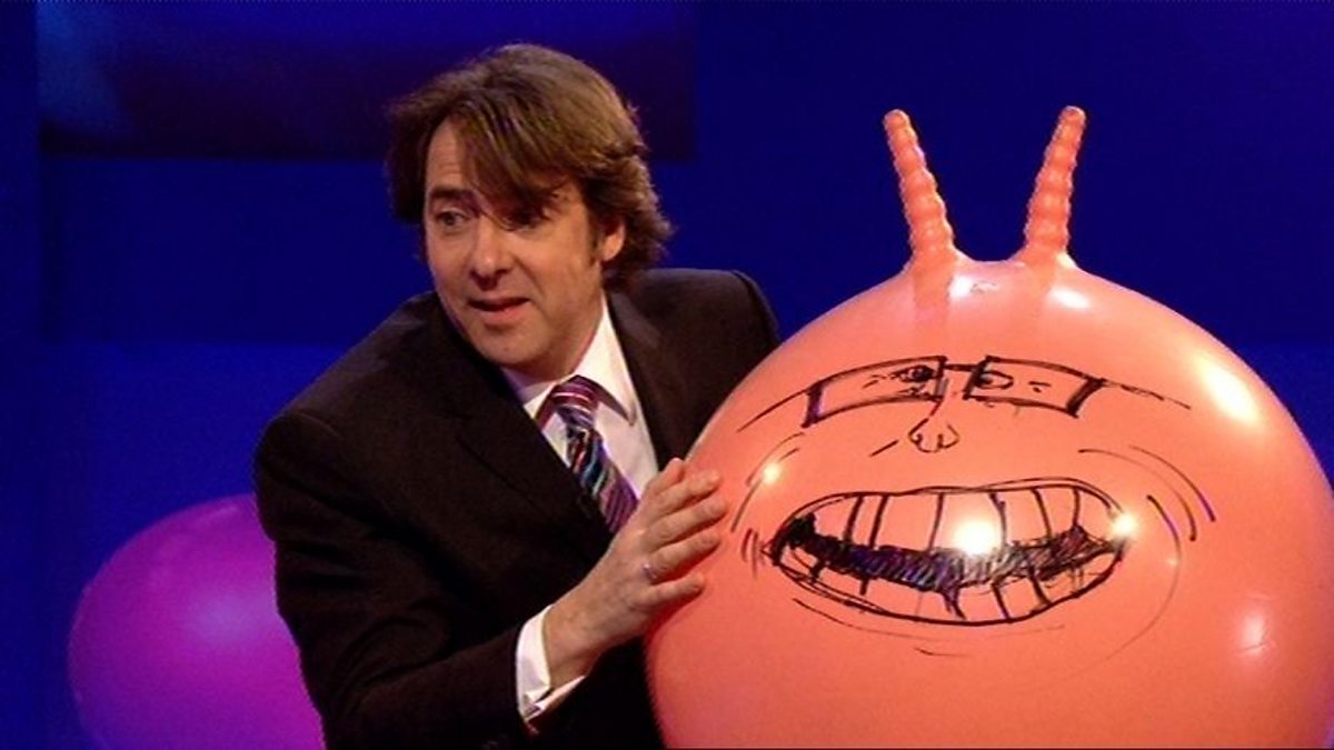 Jonathan and the audience all draw Alan Carr's onto round objects.