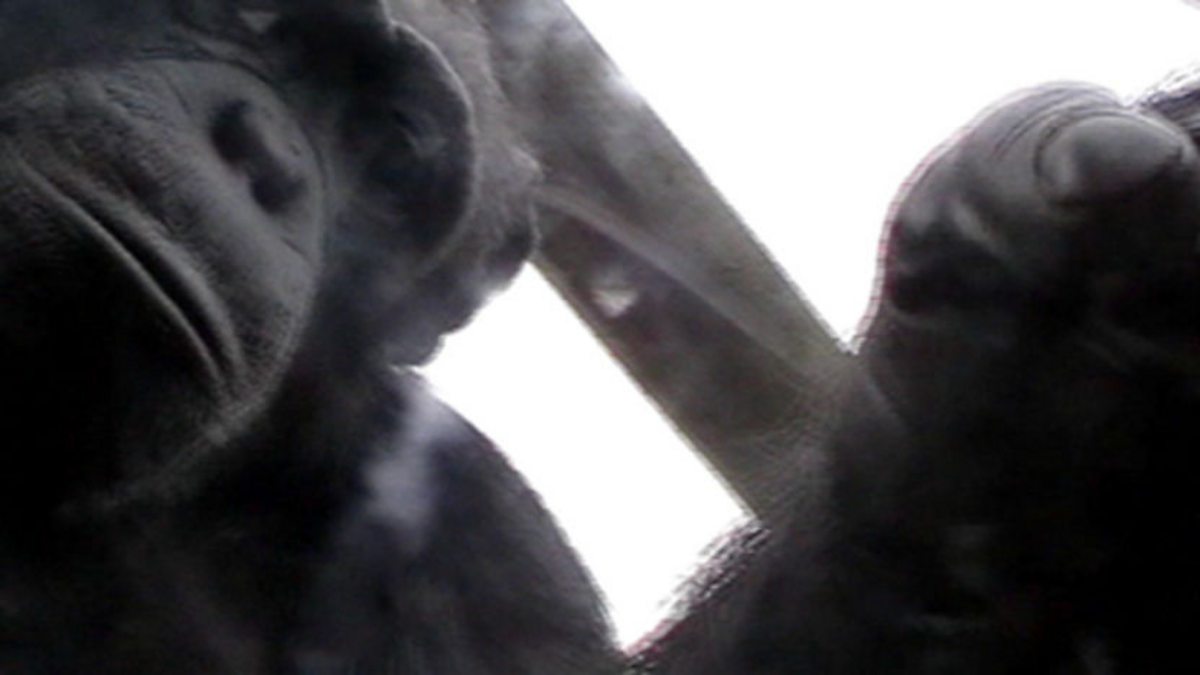 It took thousands of years of human ingenuity for humans to invent video, but these ordinary chimps at Edinburgh Zoo have grasped something of the technology in just 18 months. This is the culmination of Besty Herrelko's research project with the chimps at the zoo: providing them with a video camera and screen, this is the first ever film recorded entirely by chimps.