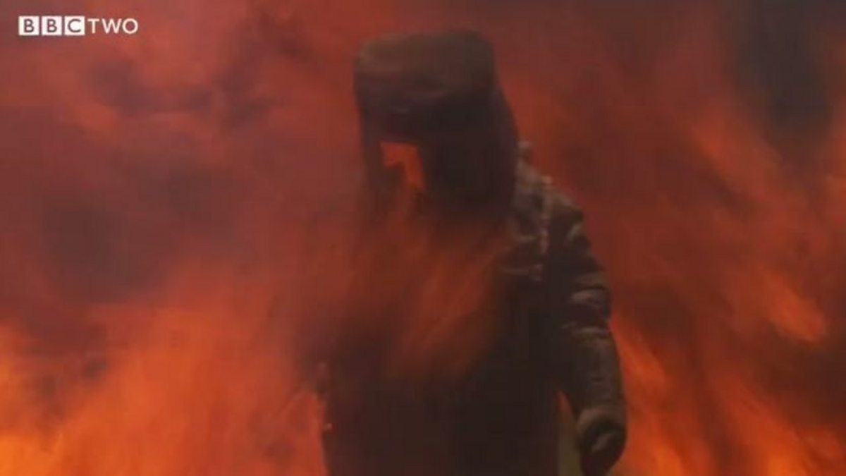 Professor Iain Stewart walks right through the heart of a raging fire.