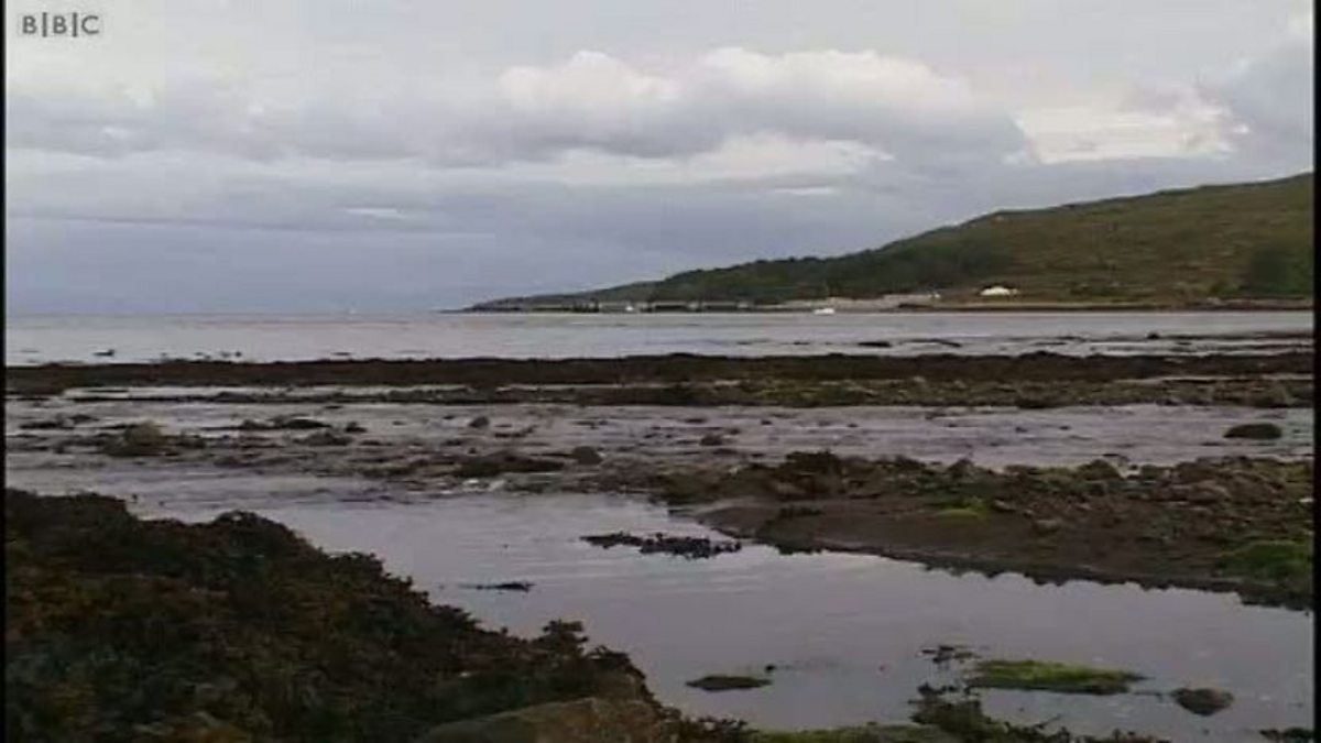 Gordon Buchanan is heading over to the south side of the island, to check out a story about some animal behaviour, apparently unique to Rum. Apparently the crows on Rum have developed a taste for sea food and at low tide they come and pick up the shells, fly up into the air and drop them from a great height to smash them on the rocks. They then come and feed on them. But he has to wait for a low tide and the crows to arrive - and to chase off an intruding dog. The hooded crows finally turn up, and search shellfish before flying up and dropping the shells on the rocks. You can really see why crows are one of Scotland's cleverest birds.