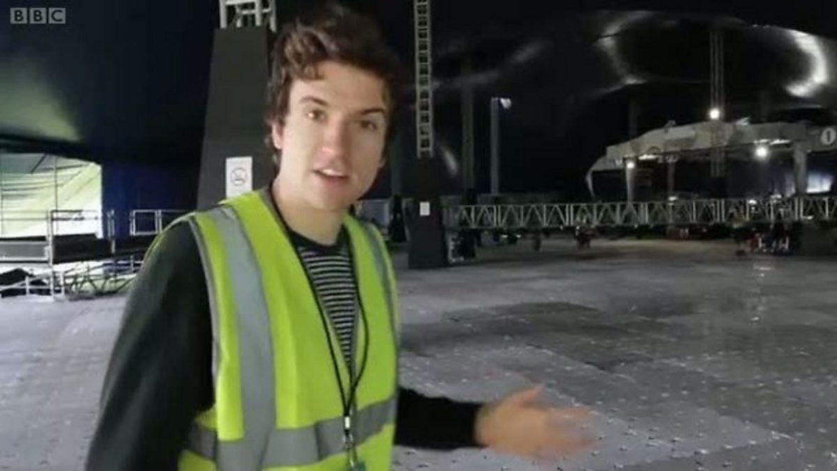 Greg James dons his hi-vis jacket and shows us around the site of Radio 1's Big Weekend