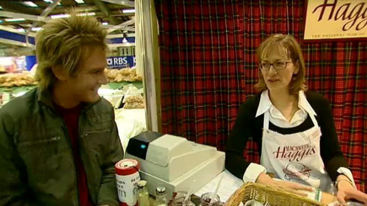 Archive footage from Landward's coverage of the Royal Highland Show 2006. Presenter Phil McHugh attempts to 'blag' as many items as possible at the show.