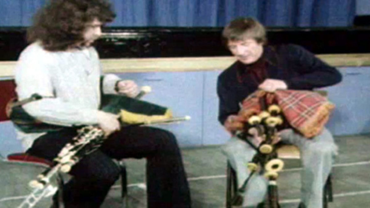 Uilleann Piper Finbar Furey gives a brief overview of the uilleann pipes and explains to Roy Castle the difference between the Irish and Scottish pipes.