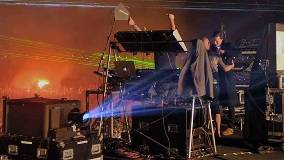 Matt Smith AKA Dr Who joins Orbital on stage at Glastonbury to perform a techno version of the Dr Who theme tune.