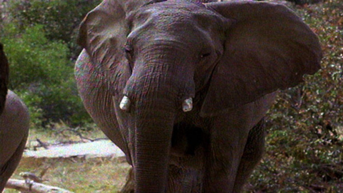 By ten o'clock in the morning the sun is hammering down on the Namib Desert, yet the giraffes do not seem to notice. Blythe Loutit explains to Jonathan Scott that the giraffes here don't drink. Instead they get all the water they need from plants and dew drops from the morning fogs. Back on the elephant trail they drive in search of a bull that had moved down the valley. As they watch, they see the bull go up on its hind legs and pull seedpods from a tree. They also see an elephant calf with deformed hind feet and not much idea how to use its trunk yet, but it gets plenty of attention from its mother. Eventually 14 elephants gather - probably the largest group in the area - despite the lack of vegetation.