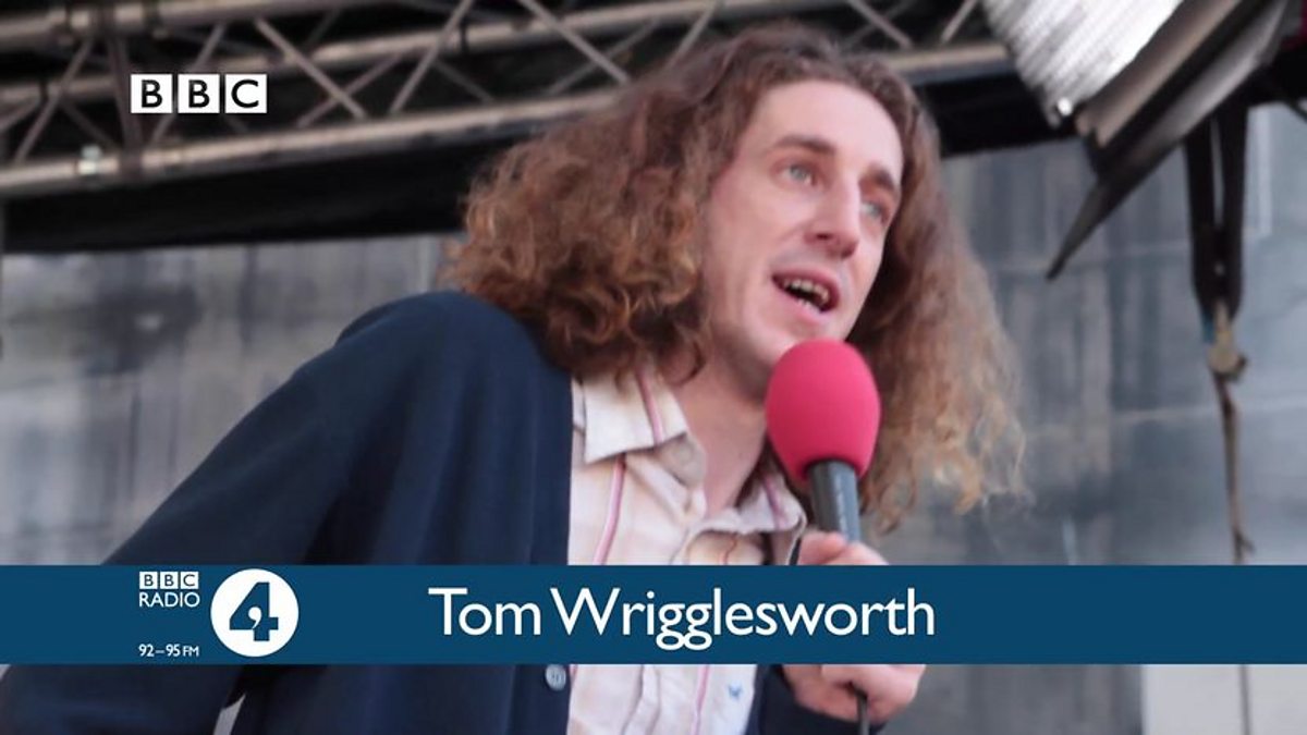 Tom Wrigglesworth performing on Radio 4's special stage on Edinburgh's Royal Mile.