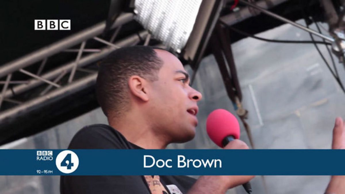 Doc Brown performing a comedy rap on Radio 4's special stage on Edinburgh's Royal Mile.