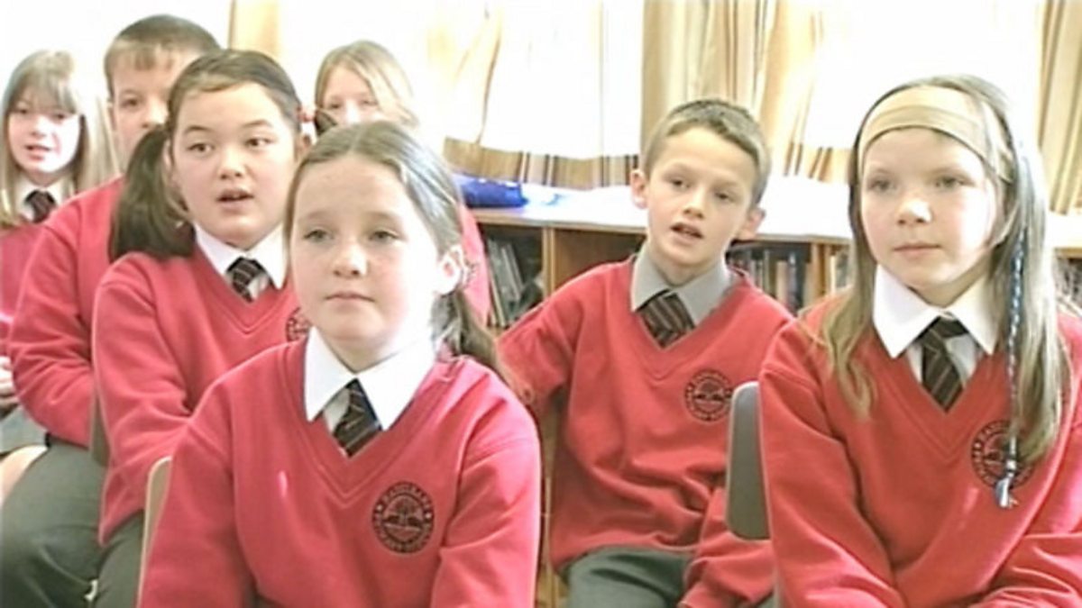 At Hazelbank Primary School, Willie has a good old sing-song with the pupils, singing the songs ‘Champ’ and ‘My Aunt Jane’.