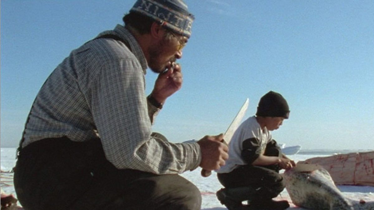 Apak Taqtu, a young Inuit boy, helps his father hunt and skin a narwhal that will be used to feed the whole community.