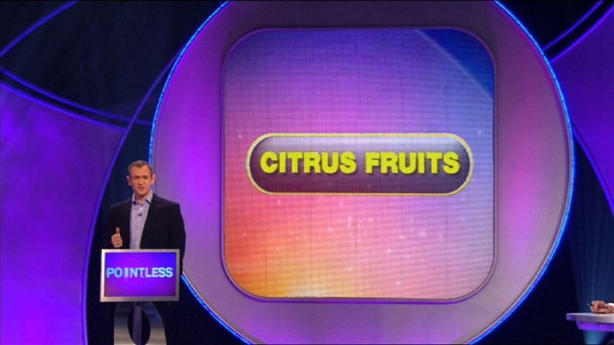 Alexander Armstrong asks the contestant to name a citrus fruit. On this show an unusual answer often leads to a higher score.